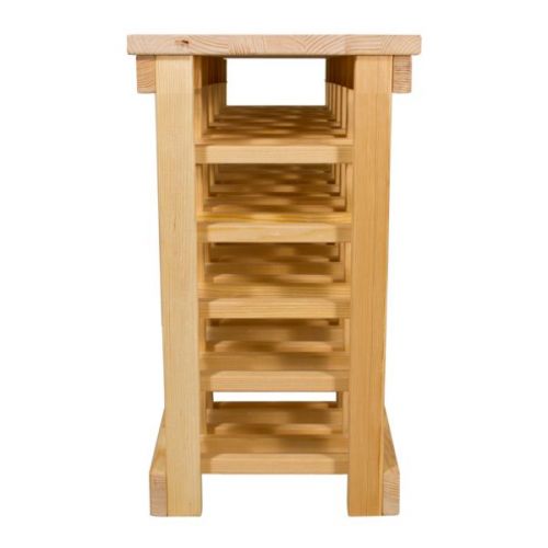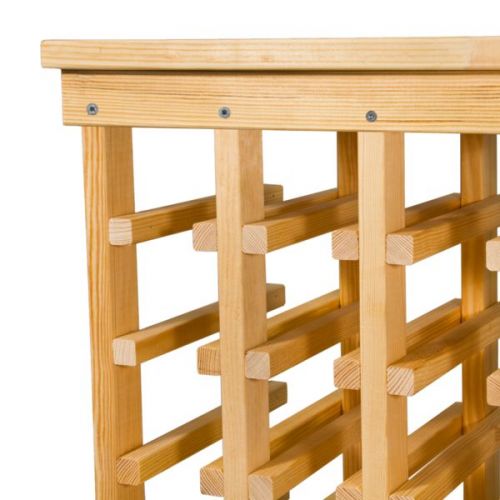 Прочная и надежная подставка-полка для 30 винных бутылок является незаменимой вещью для винного погреба. Изготовленная из сосны, она отлично впишется в интерьер и будет радовать не только функциональностью, но и внешним видом. Несмотря на достаточную вместительность, она имеет весьма скромные габариты: длина 70 см, высота - 50 см, и ширина всего 31 см. Она не занимает много места, благодаря чему даже в небольшом помещении можно без труда разместить несколько подобных полок-подставок для бутылок.