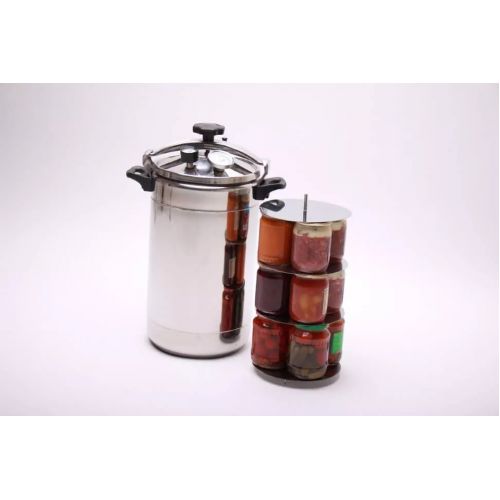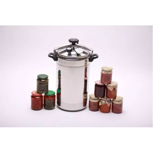 Аппарат имеет термометр и манометр, с помощью которых можно осуществлять слежение за нагревом и давлением внутри. Рядом автоматический спусковой клапан, из которого выходит лишняя влага и пар. Автоклав совместим во всеми видами плит, приготовление можно осуществлять даже на костре.