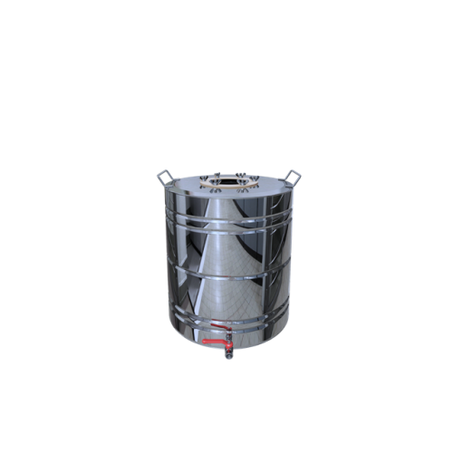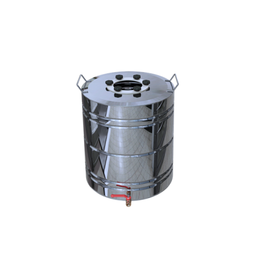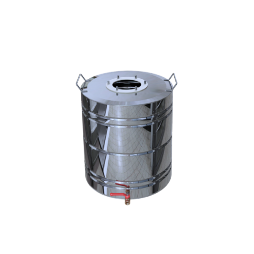 40-литровый бак из пищевой нержавеющей стали с герметичной крышкой можно использовать в качестве перегонного куба. Ребра жесткости на стенке увеличивают прочность всей емкости без увеличения толщины листа и веса конструкции.