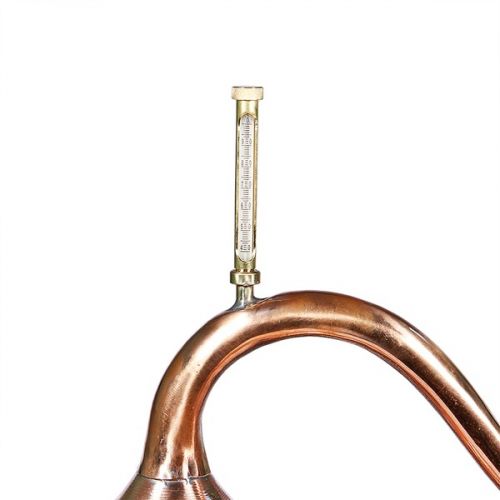Аламбик 5 л Люкс – устройство для дистилляции классического типа, цели которого – перегонка и изготовлении крепких напитков в домашних условиях. Аппарат изготовлен из прочной меди по древним португальским технологиям, неизменных на протяжении столетий. Эксплуатируя эту модель, вы сможете получить 600 мл дистиллята высокого качества за 15 минут (не учитывая время подогрева куба). Агрегат легко используется, его можно разбирать на запчасти и чистить. Трубка для отведения пара крепко соединена со змеевиком. В комплекте идут: