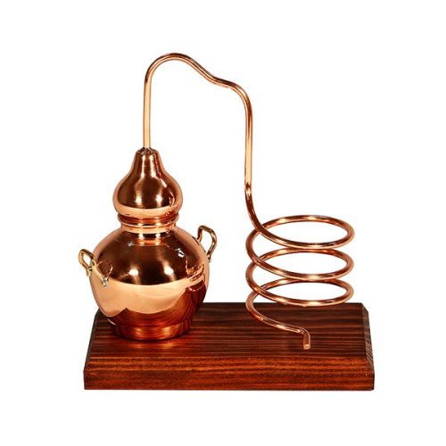 Сувенирный аламбик-держатель для бутылки в Волгодонске – самый древний аппарат для приготовления крепких напитков. Главное отличие этого устройства от обычного самогонного аппарата – его материал изготовления. Медь вступает в реакцию с жидкостью и, осаждая оксид серы, делает вкус алкоголя мягче.