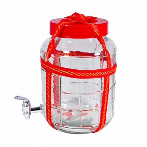 9-ти литровые банки с гидрозатвором и краном подойдут как для сохранности разных продуктов, так и для засолки овощей, рыбы, консервирования фруктов и заготовки соков. Прекрасно справятся стеклянные емкости и с изготовлением вина, пива, кваса и других напитков.