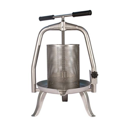 Корзина, изготовленная из нержавеющей стали имеет высоту 32,5см и диаметр 20см. Станина также изготовлена из нержавеющей стали. Выбор данного материала не случаен, так как он обеспечивает с одной стороны надежность, а с другой безопасность. Описываемая модель пресса является достаточно эффективной. При условии заполнения корзины, объемом 10 литров, на выходе можно получить порядка пяти литров сока. Купить пресс FT20 IN ручной 10л можно в нашем интернет – магазине.